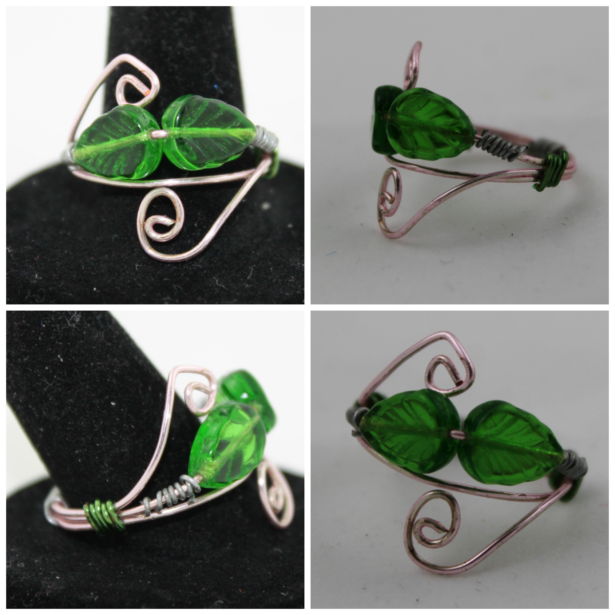 Swarovski Green Leaves Wire Wrapped Ring