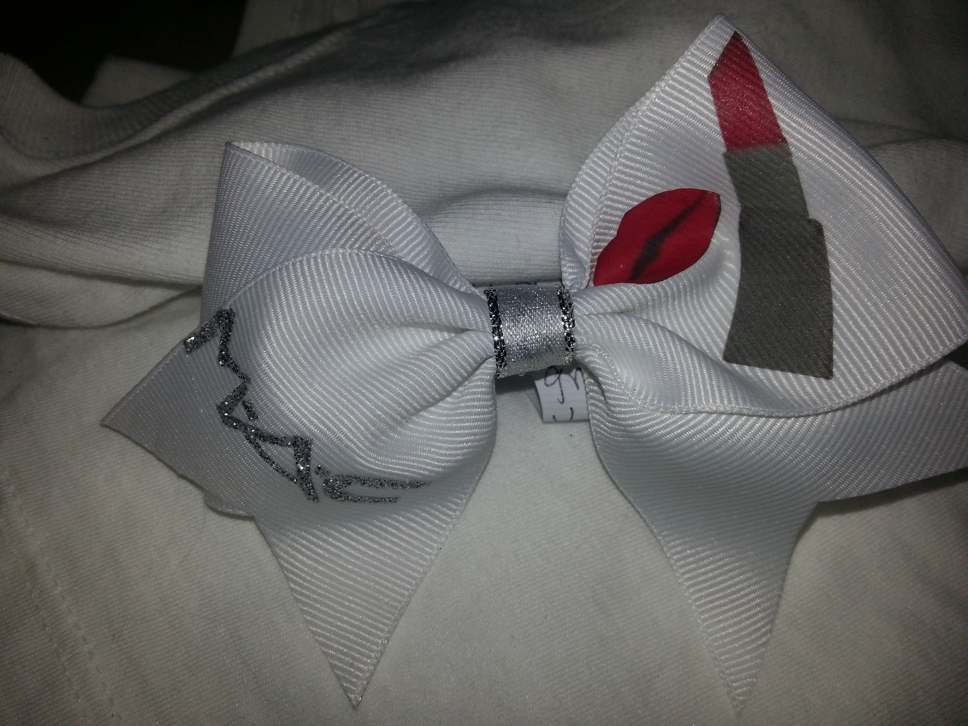 "M.A.C. in Silver & Red Lipstick Bow" CHEER BOW; 2 in White Grosgrain Ribbon with White Center