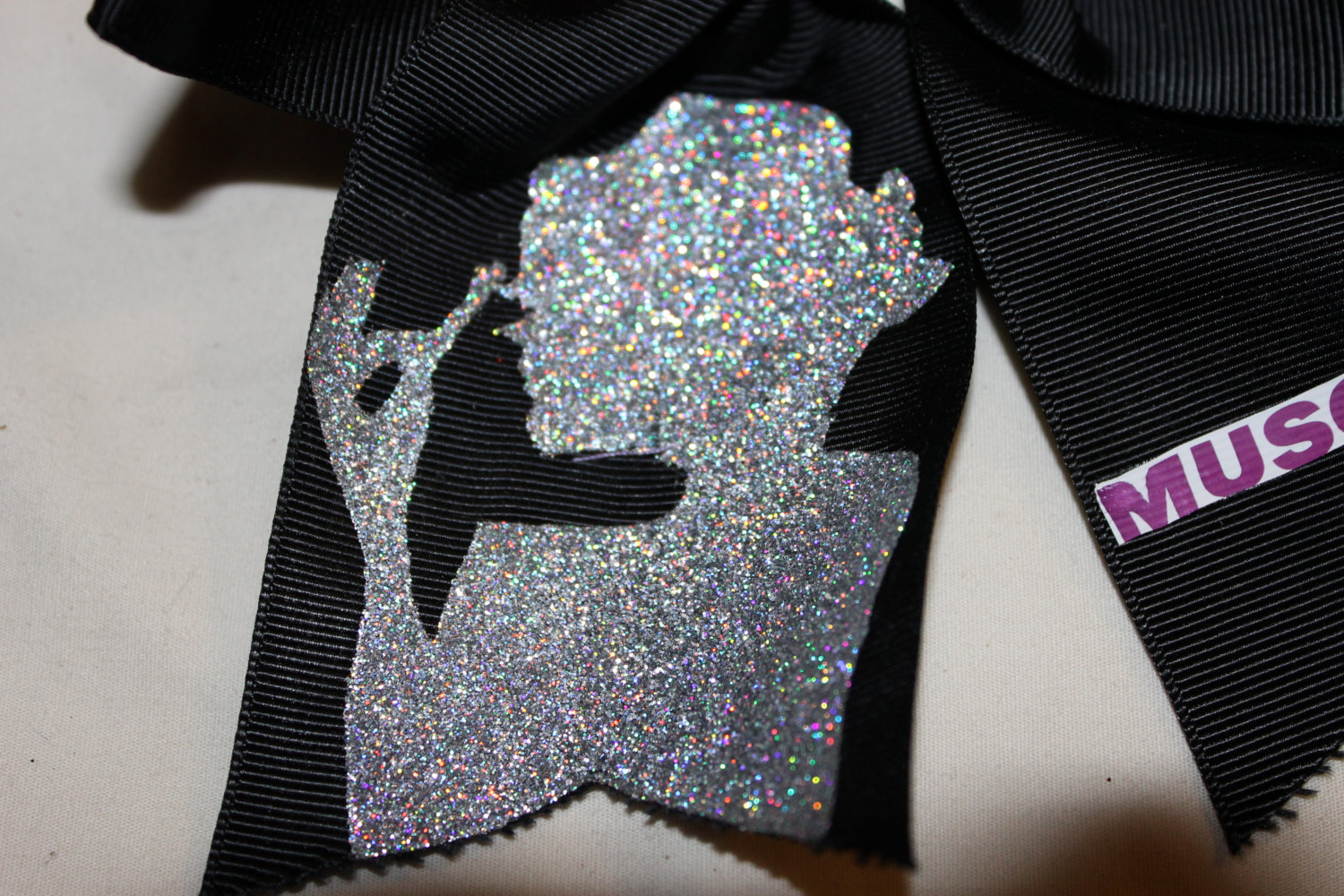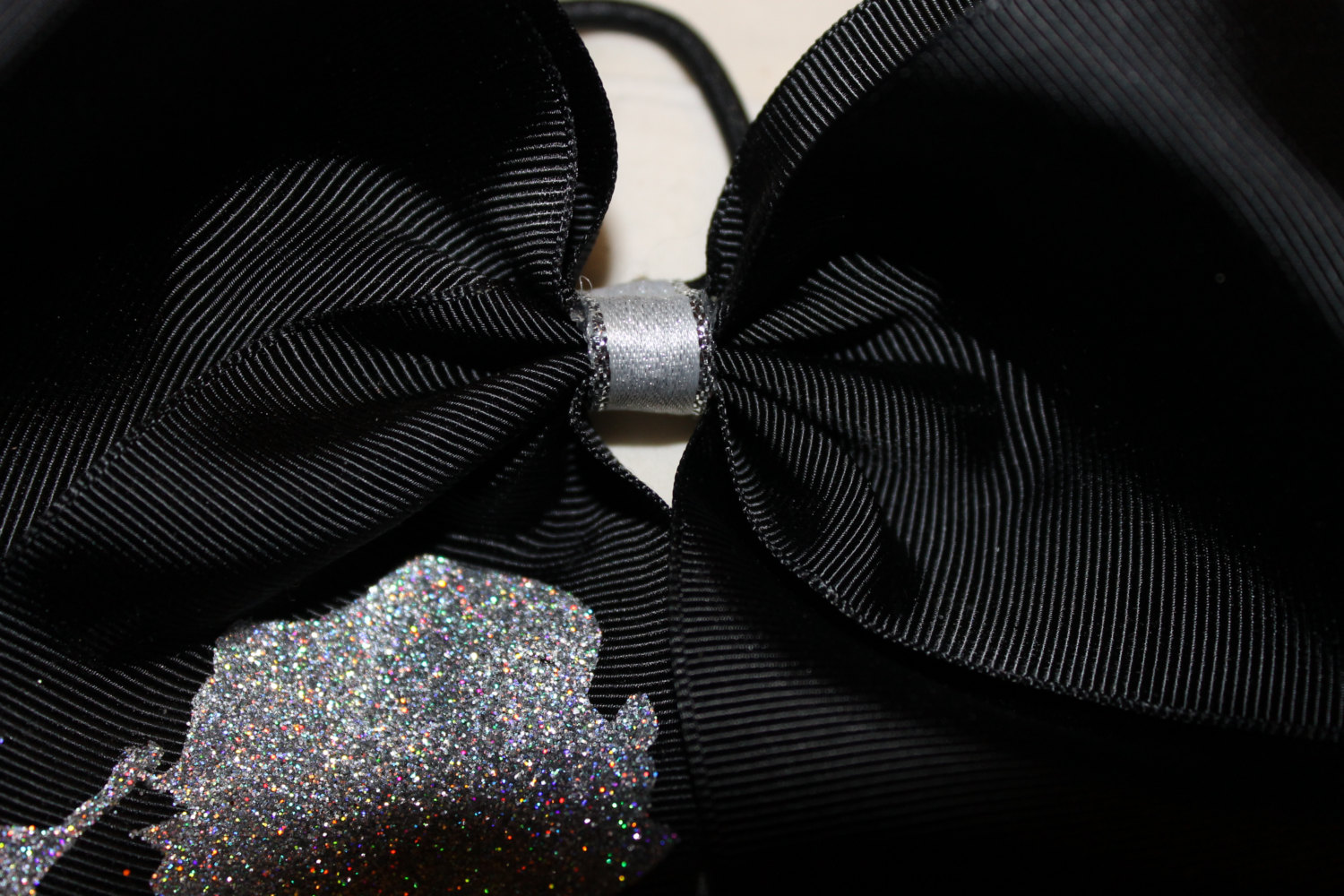 "MUSCLES & MASCARA" CHEER BOW; 3 in Black Grosgrain Ribbon with a Silver Center