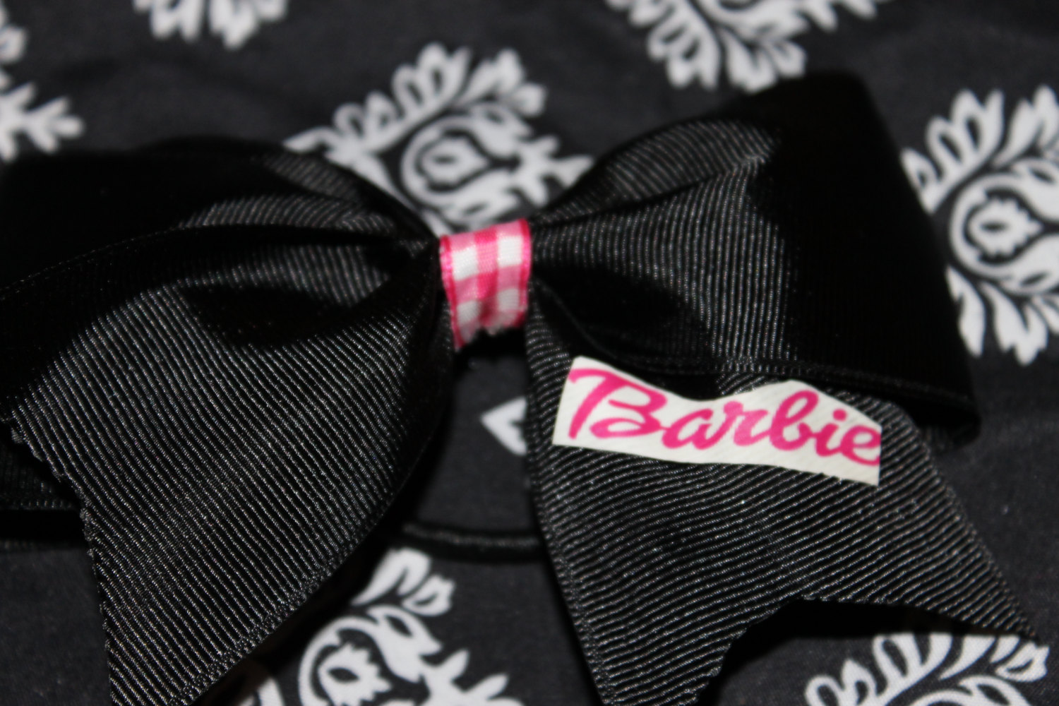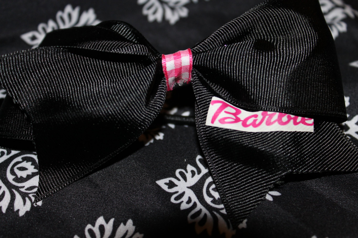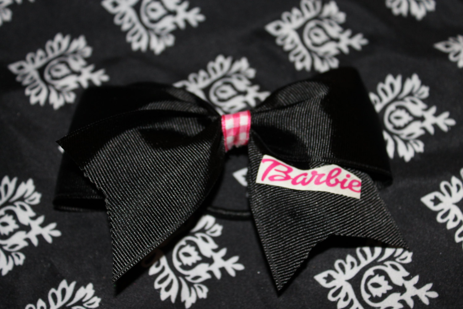 This is a 2 inch bow in Black Grosgrain RIbbon with a Pink Gingham center "Barbie"