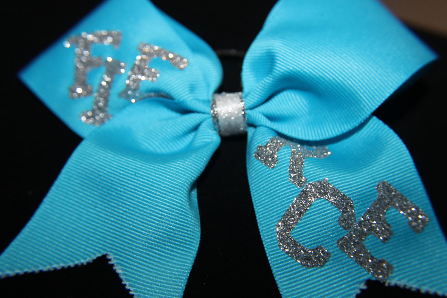 "FIERCE" CHEER BOW; 2 in Turquise Grosgrain Ribbon with Silver center