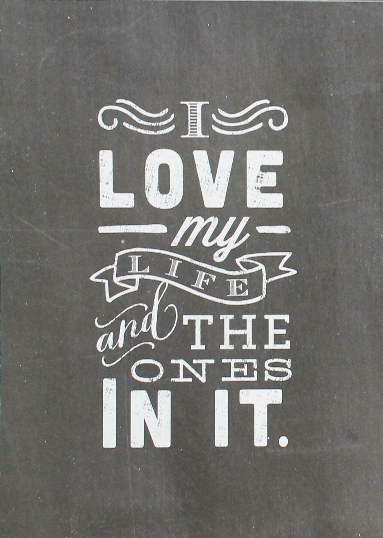 PRINT "I LOVE MY LIFE AND THE ONES IN IT" 5 x 7 Chalkboard Quotes Collection