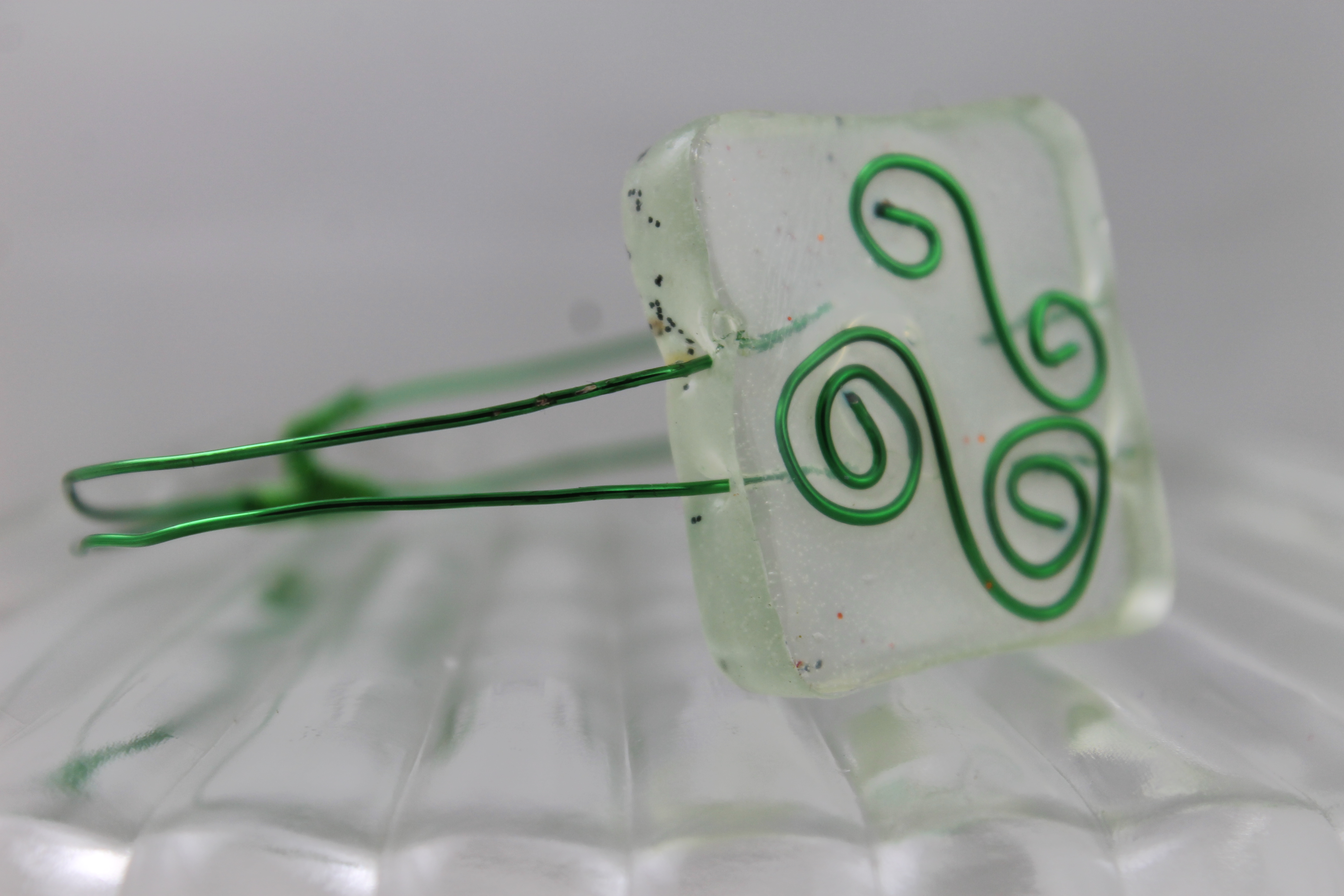 This bracelet is Hannah and known for its two thin delicate lines and flirty swirls adorned by a square resin piece.