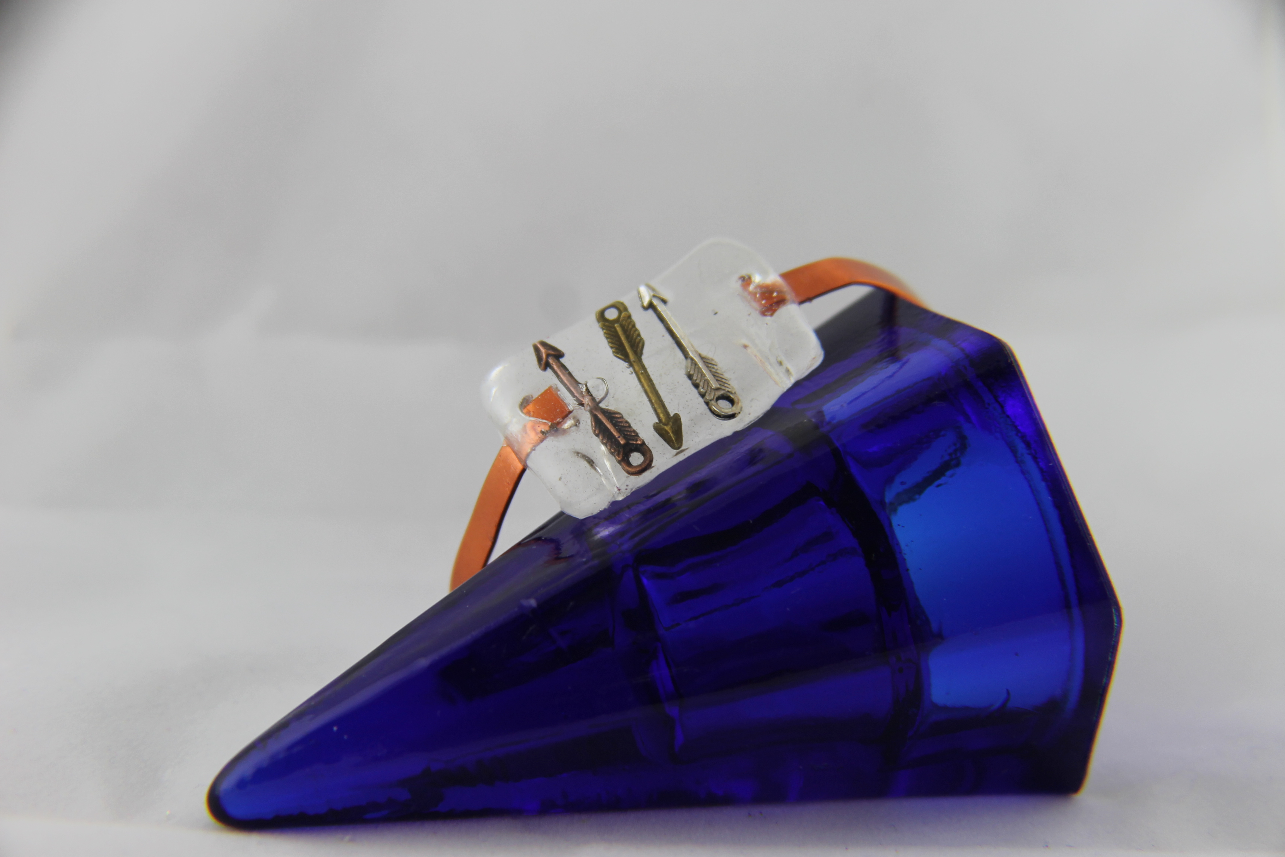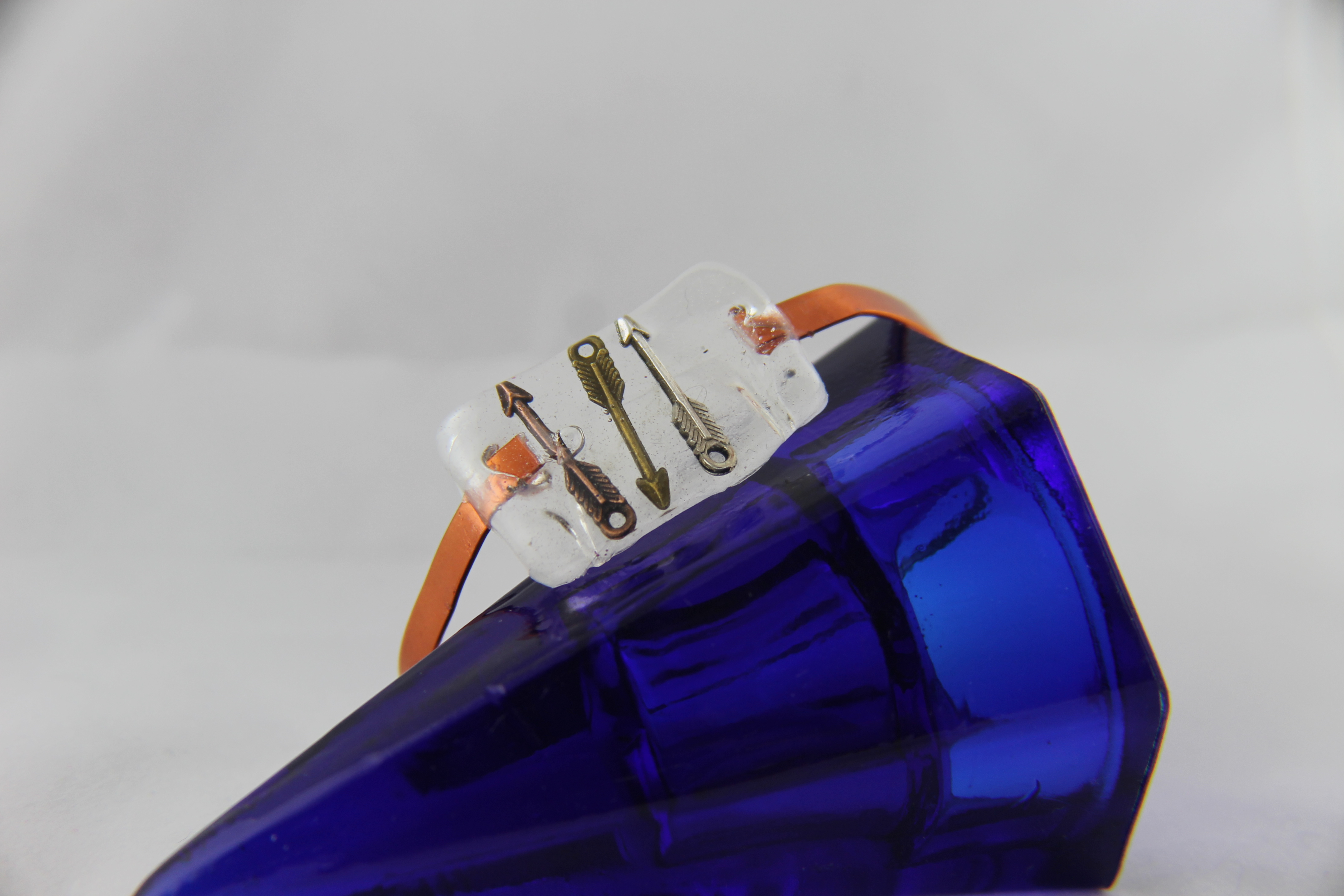 This bracelet is Alexxa and is known for its singular wide wire and clean lines. adorned by a resin statement piece.