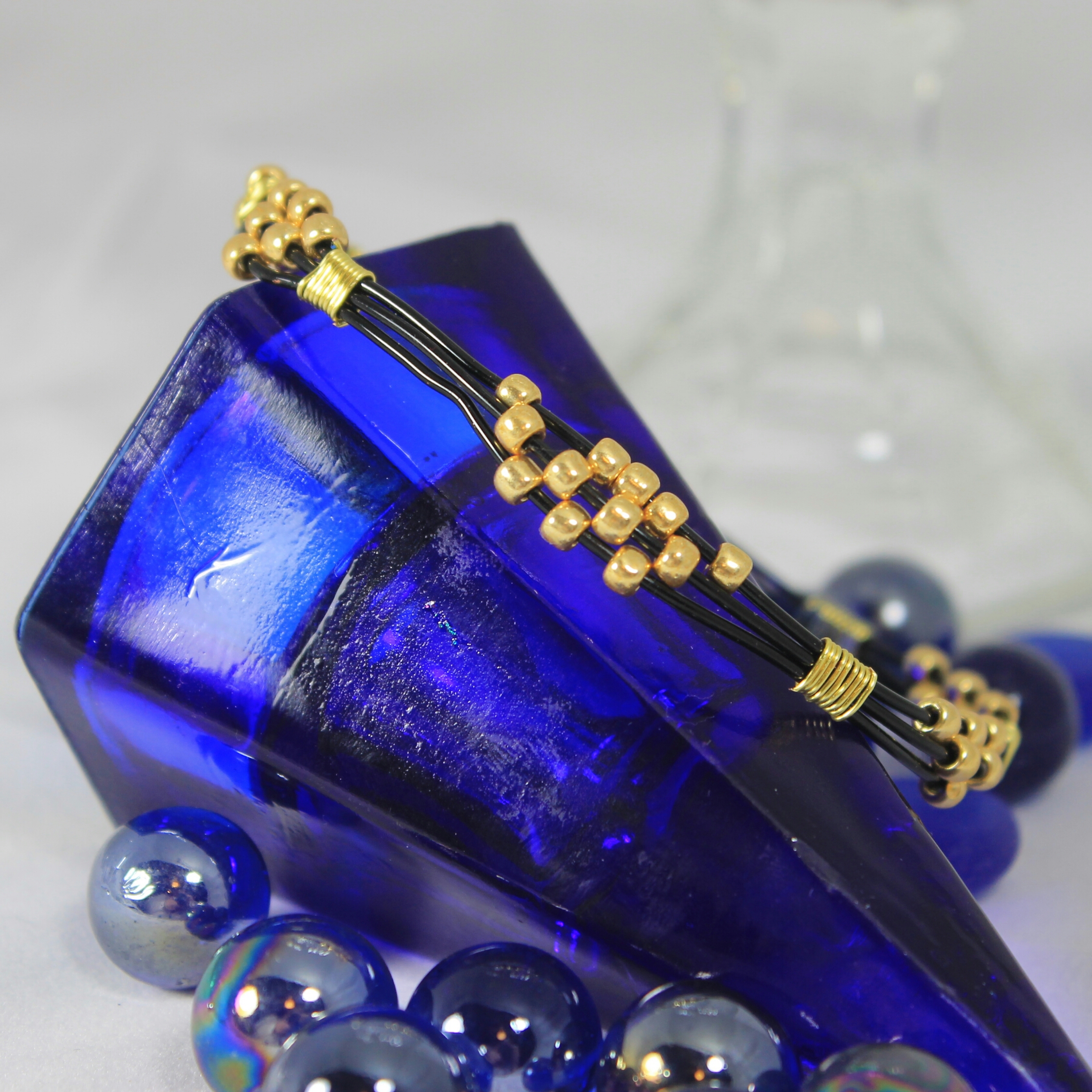 This bracelet is Deco and known for delicate black & gold wire and clusters of beads.