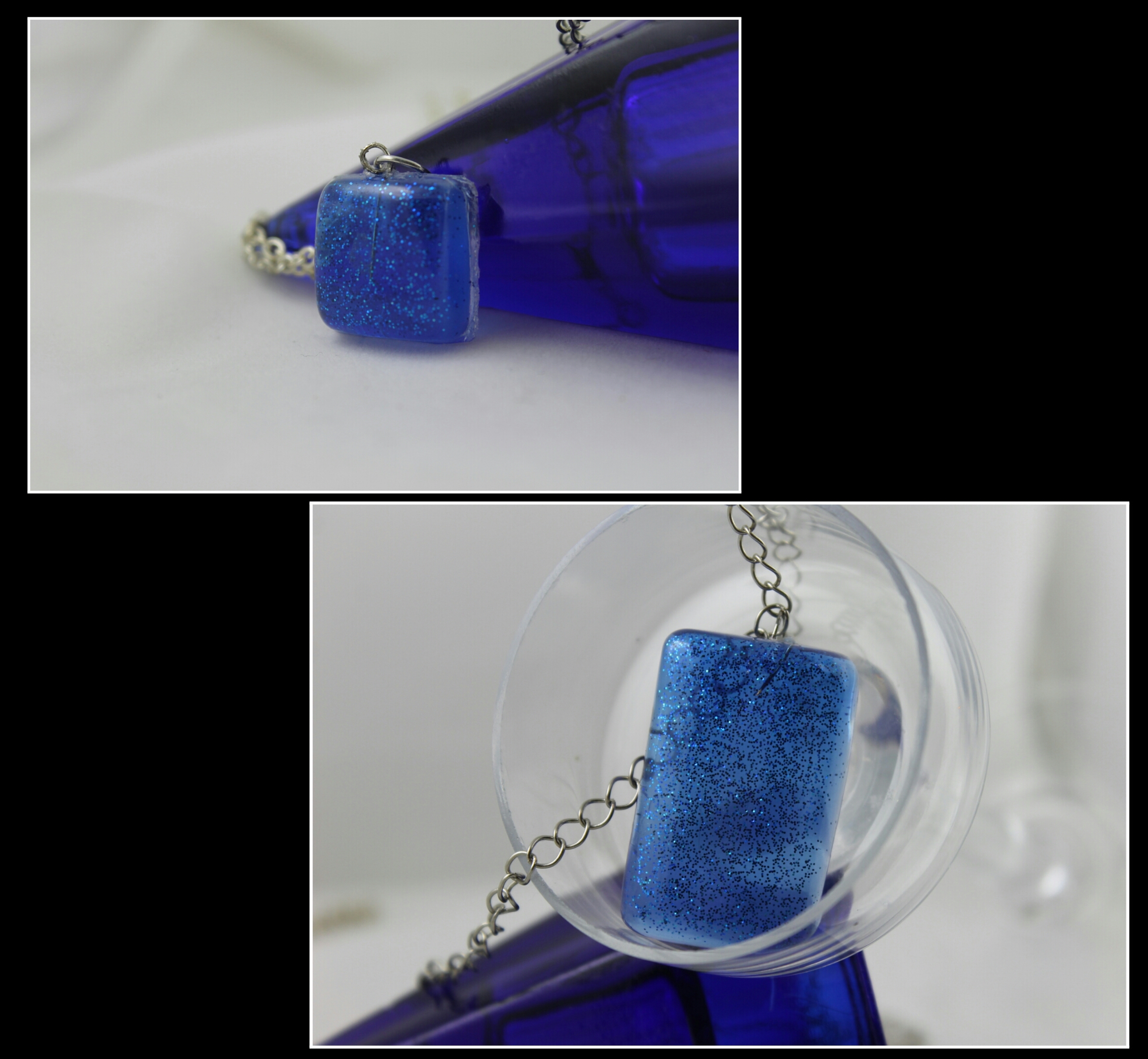 This beautiful square domed shape is called Pillow Top and is shown in Blueberry Twinkle Resin and hung on a silver chain.