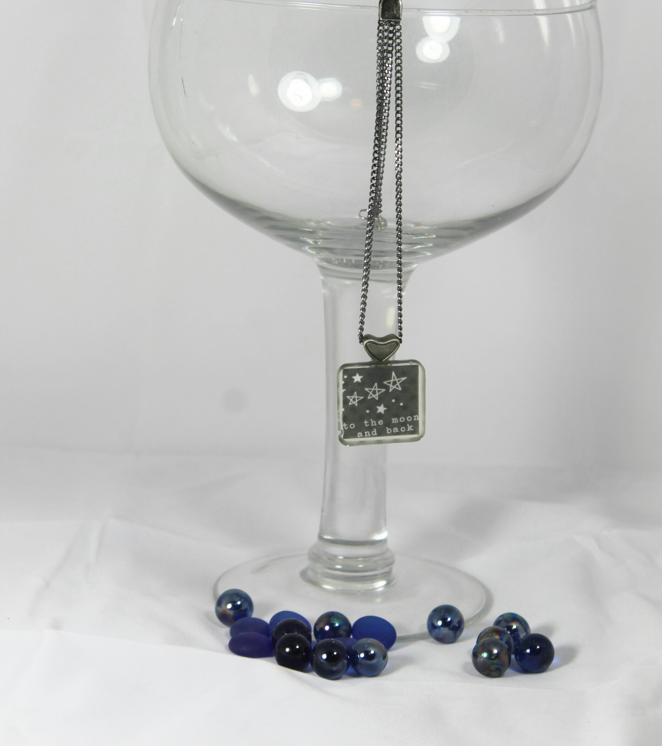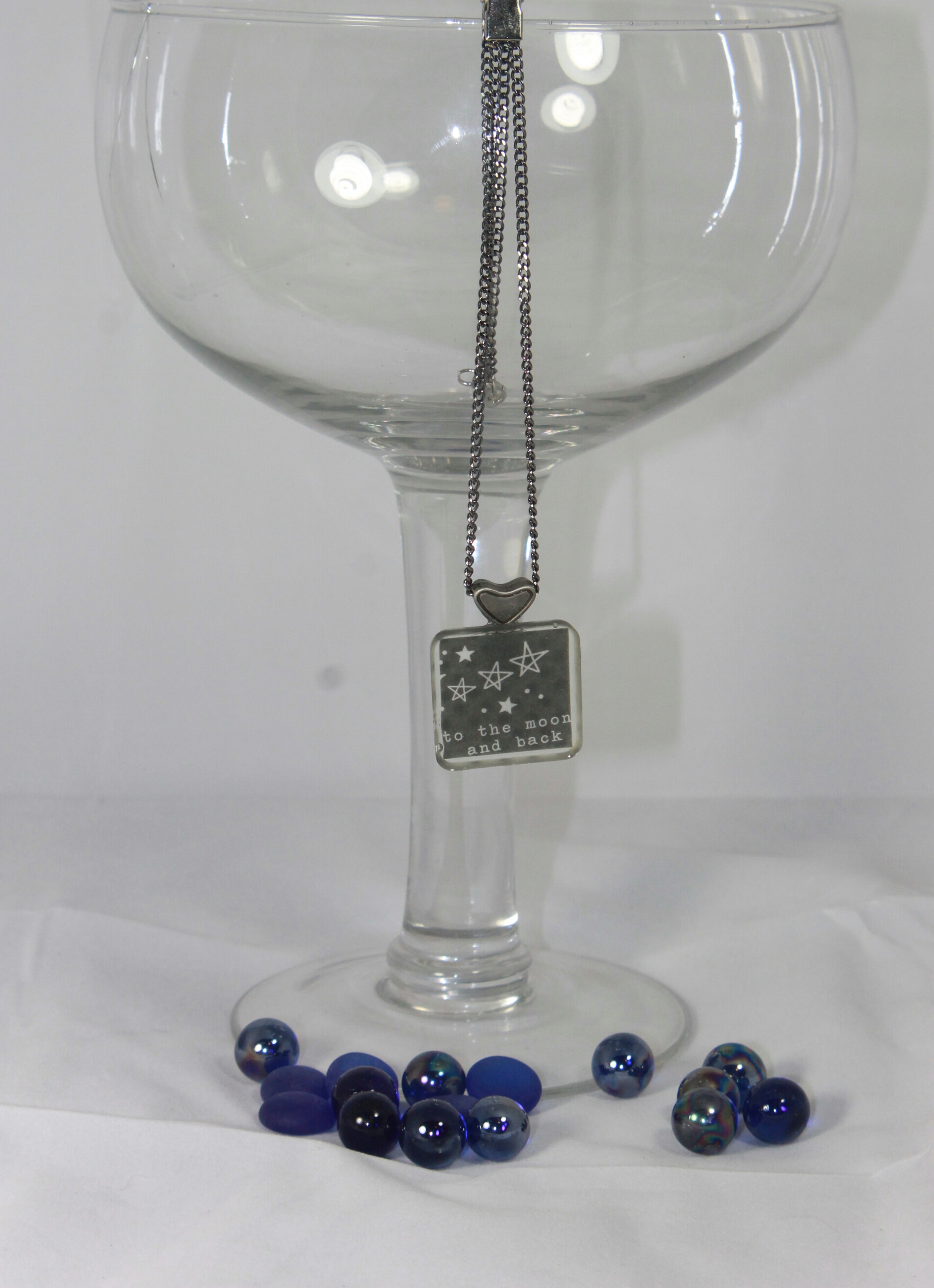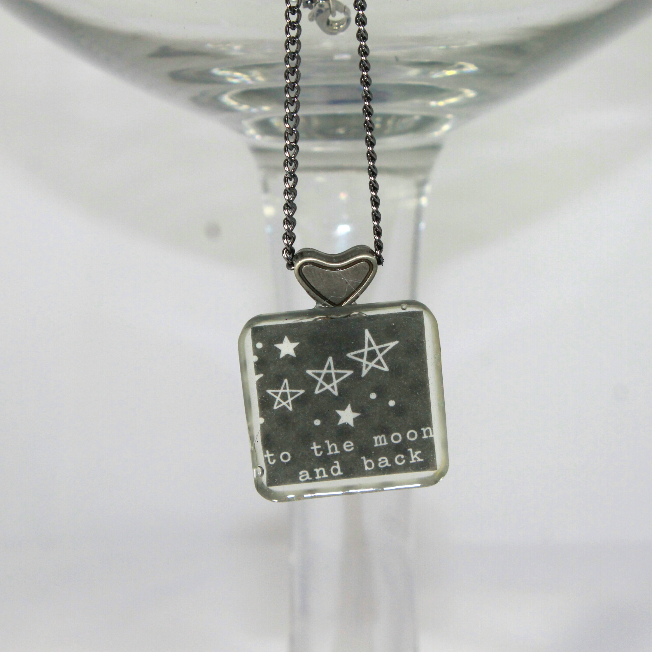 This beautiful "To The Moon & Back" Square Resin Necklace with a pewtee bezel and hung on a silver chain.