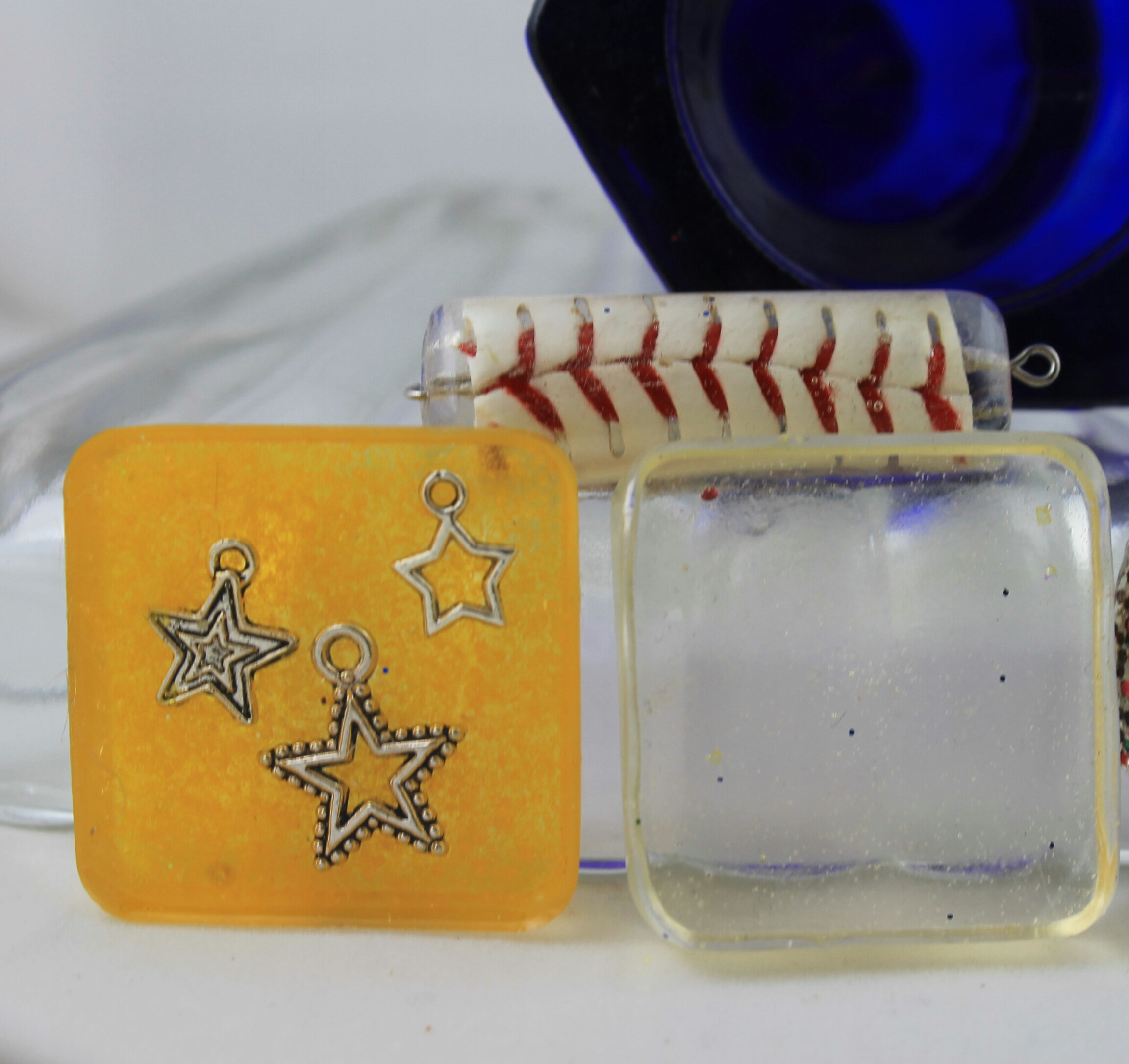 Square Charms Football, L.O.V.E. Baseball, Clear, Stars