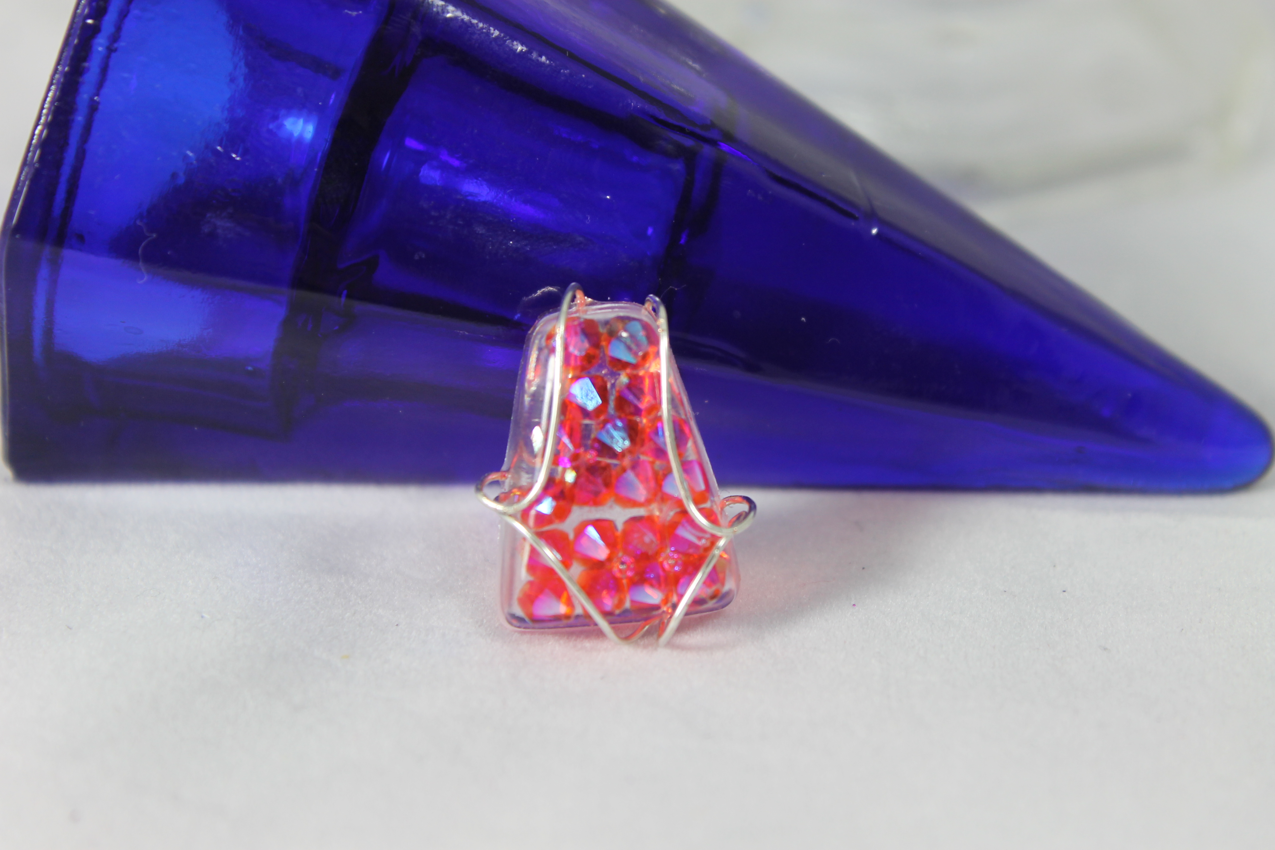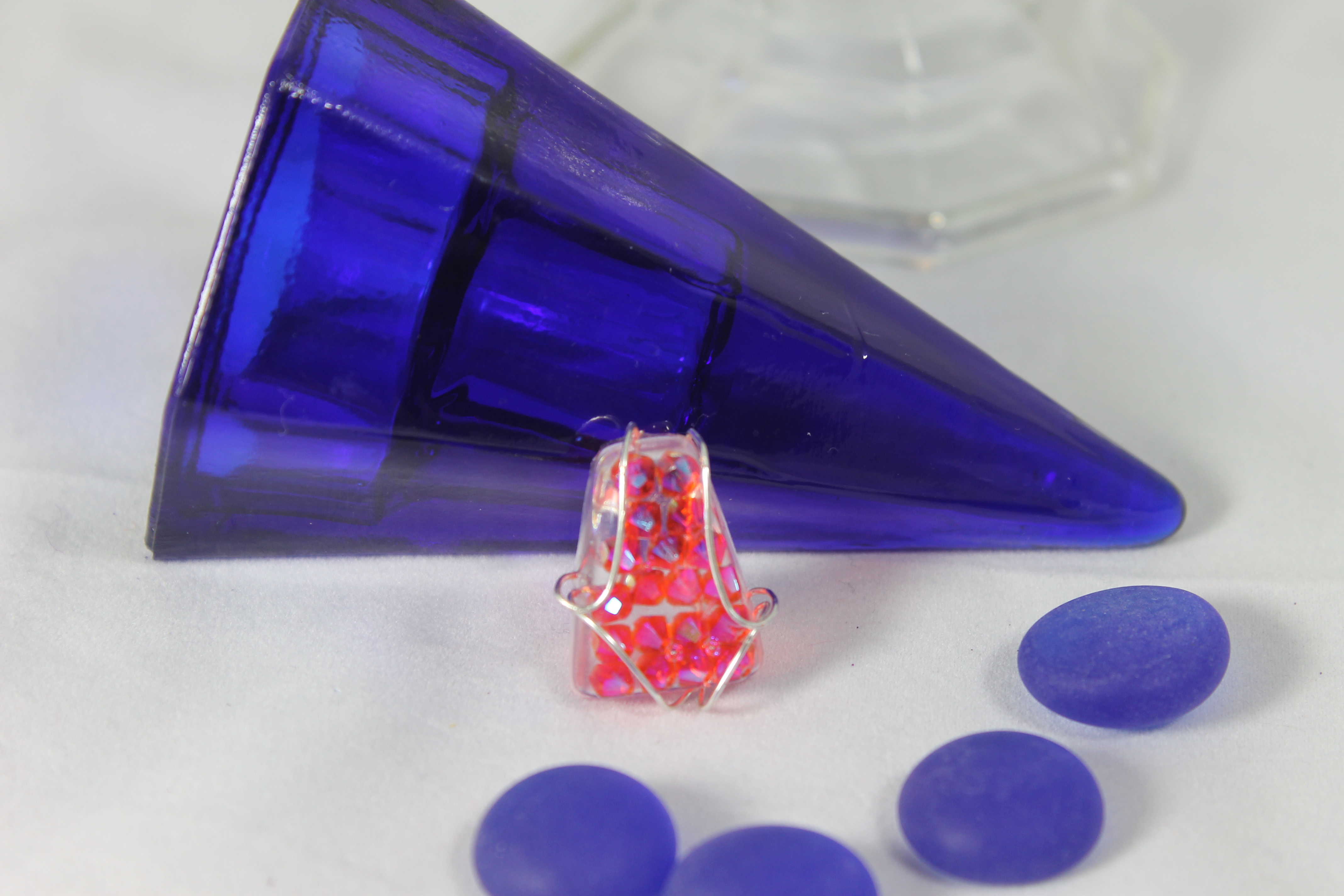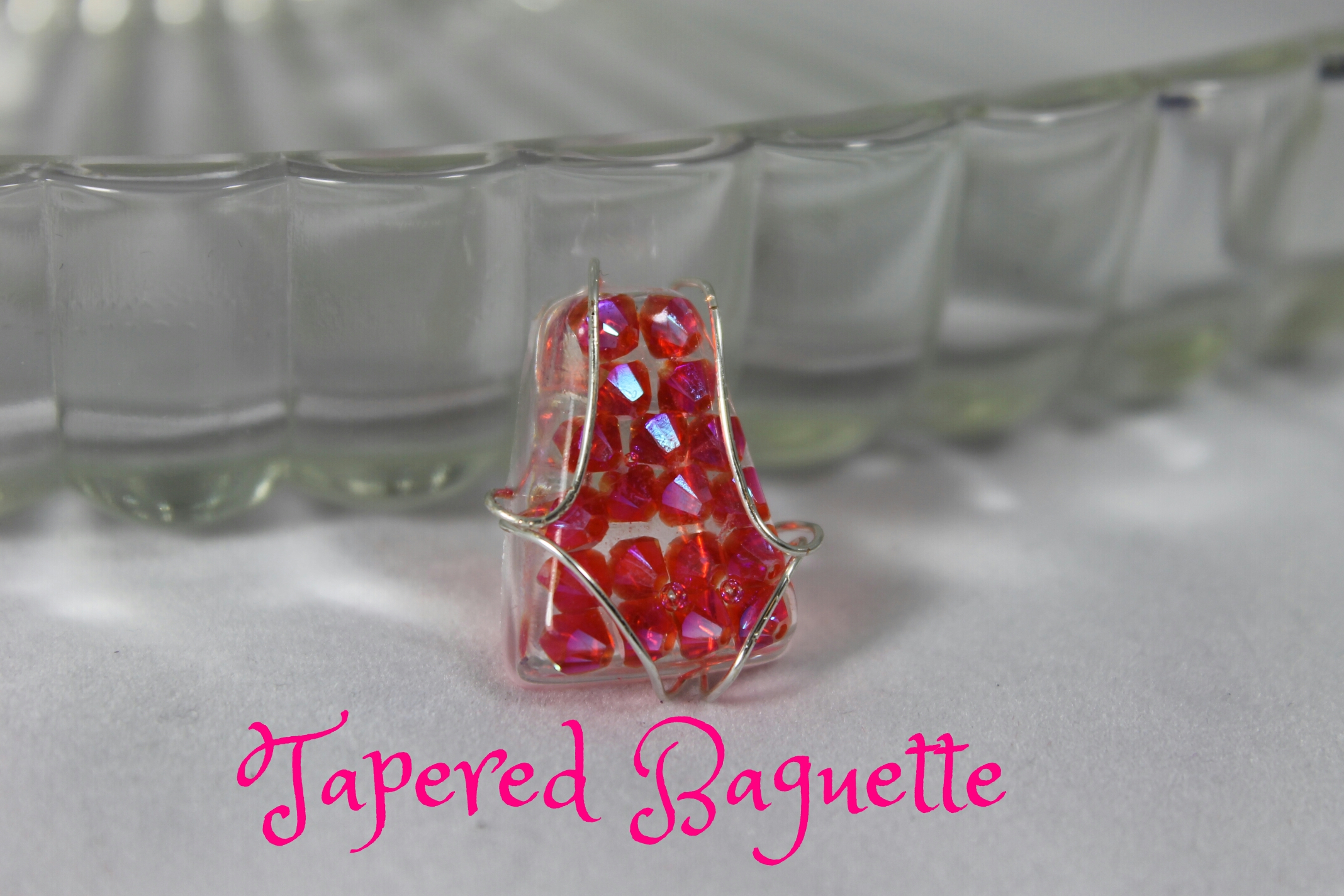 Tapered Baguette Charm in Hibiscus Bicones wrapped in Sterling Silver